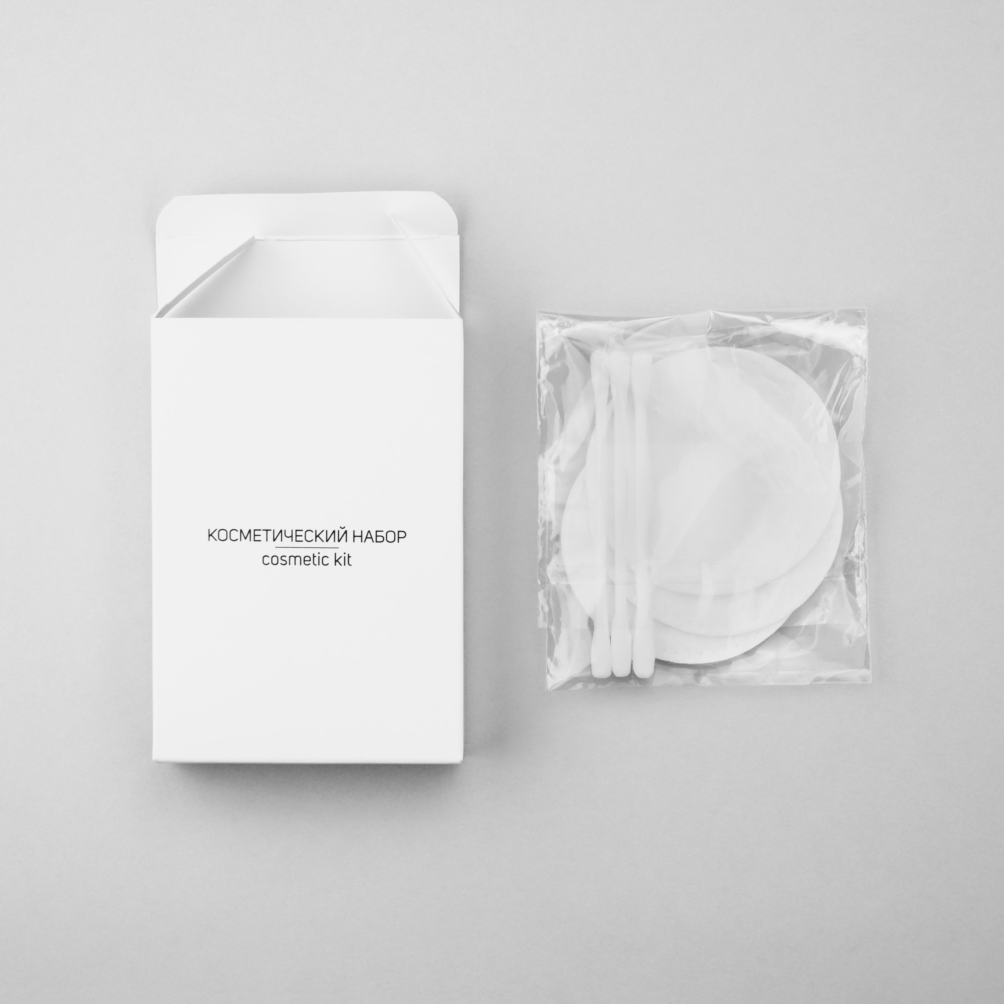 Индивидуальный косметический набор включает в себя минимальный набор предметов гигиены. Поможет быстро очистить кожу и аккуратно поправить макияж.