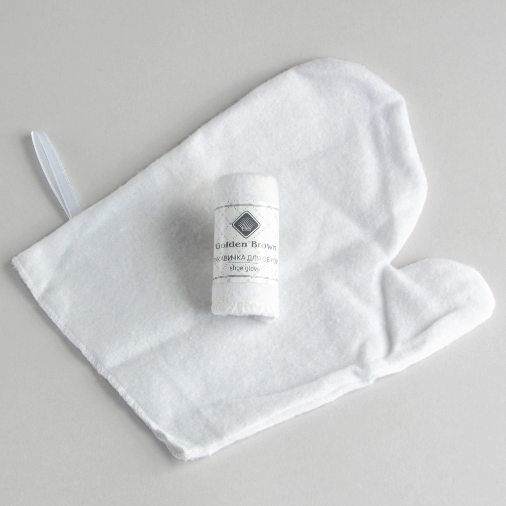 Белая фланелевая рукавичка предназначена для протирки и полировки любого вида обуви.