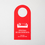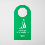 Двусторонняя вывеска из ламинированного картона (дорхенгер), которая вешается на дверь номера. С одной стороны размещена надпись с просьбой "не беспокоить" гостя, а с другой - информирование персонала о необходимости уборки в номере.