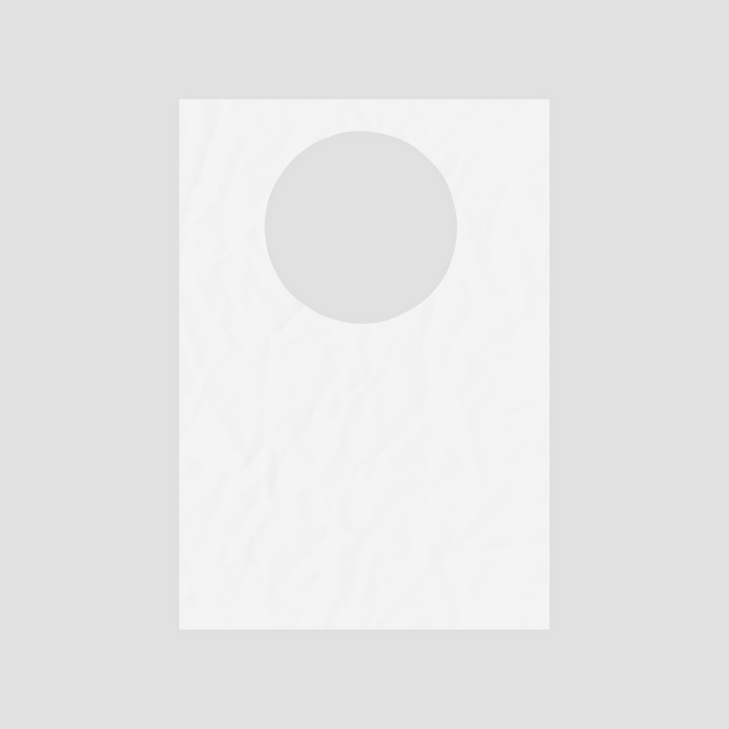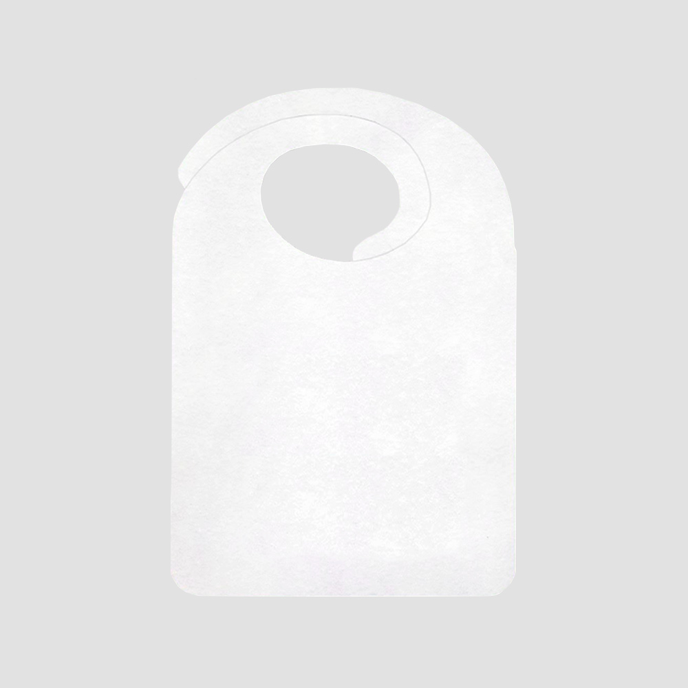Нагрудник с круглой горловиной из тонкого нетканого материала, используется как фартук для защиты одежды гостей и и одновременно может использоваться как салфетка.