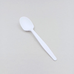 Одноразовая столовая биоразлагаемая ложка белого цвета. Изготовлена из инновационных материалов - биокомпозитный материал на основе кукурузного крахмала.